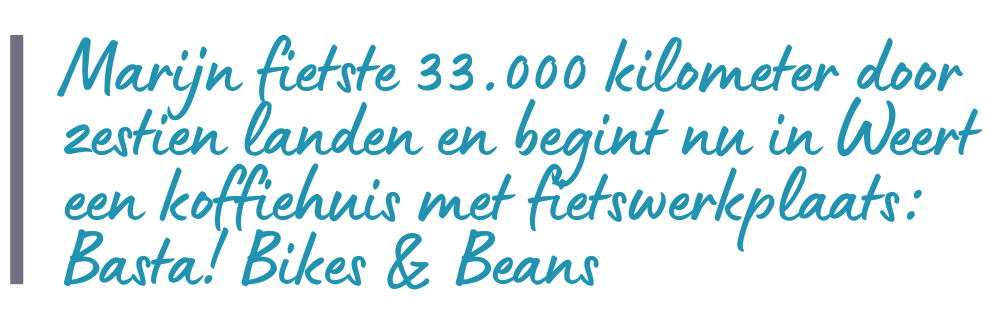 Het initiatief staat onder leiding van Marijn van de Wijdeven, die na een lange fietsreis door Noord- en Zuid-Amerika bewust koos voor werk met een maatschappelijke meerwaarde. Meer over zijn verhaal en de achtergrond van Basta! Bikes & Beans is te lezen in het artikel van De Limburger: Lees hier het artikel in De Limburger